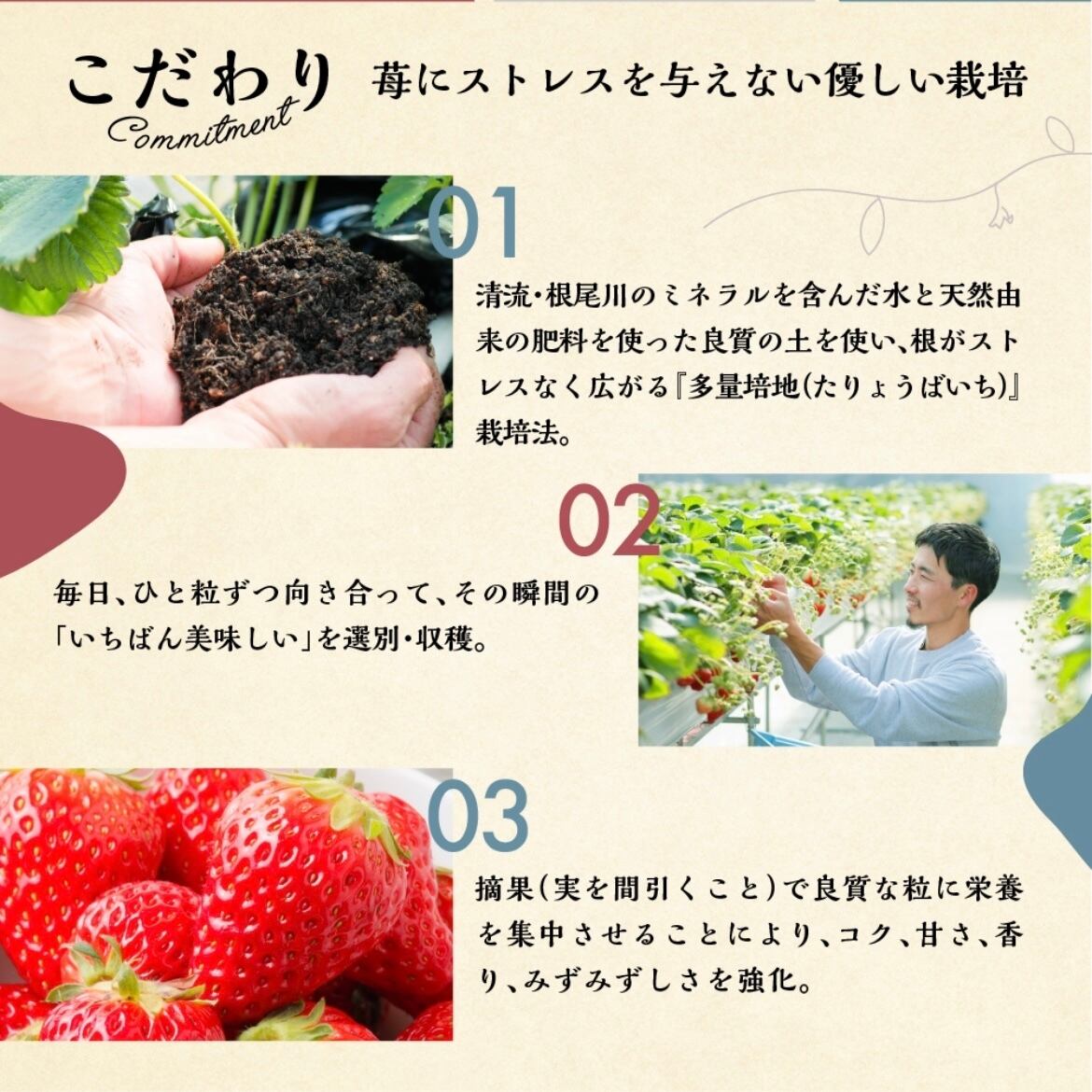 大きなものほど、じっくりと日数をかけて赤くなるまで実らせているため、とてもジューシーで甘い苺になっています。
